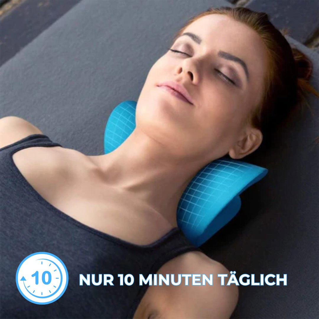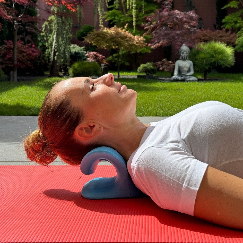 Metoda Neck Cloud wykorzystuje trakcję szyjną, aby odwrócić uszkodzenia szyi i złagodzić bóle głowy spowodowane napięciem, problemy ze szczęką oraz ból szyi i ramion, i to w zaledwie 10 minut dziennie.
